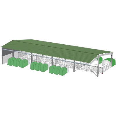 Bâtiment galvanisé tout équipé pour fonction de nurserie. Disponible en 20m, 15m et 10m.